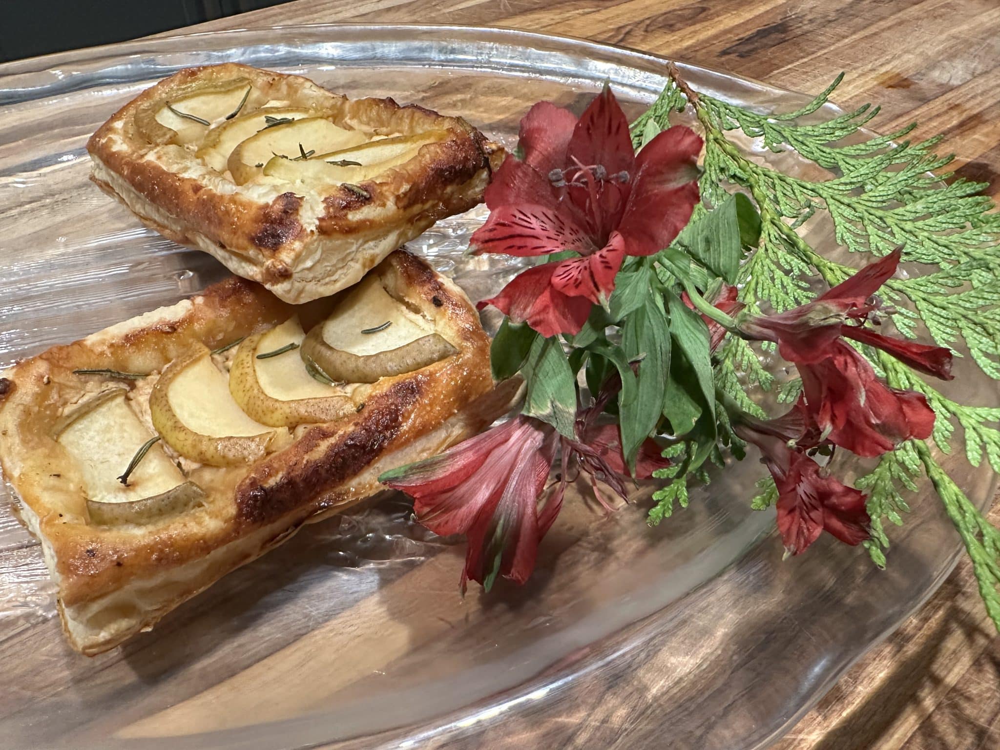 Don’t go breaking my Tart Our flaky Pear and goat cheese tart with rosemary and hot honey is simply delicious! It works equally well